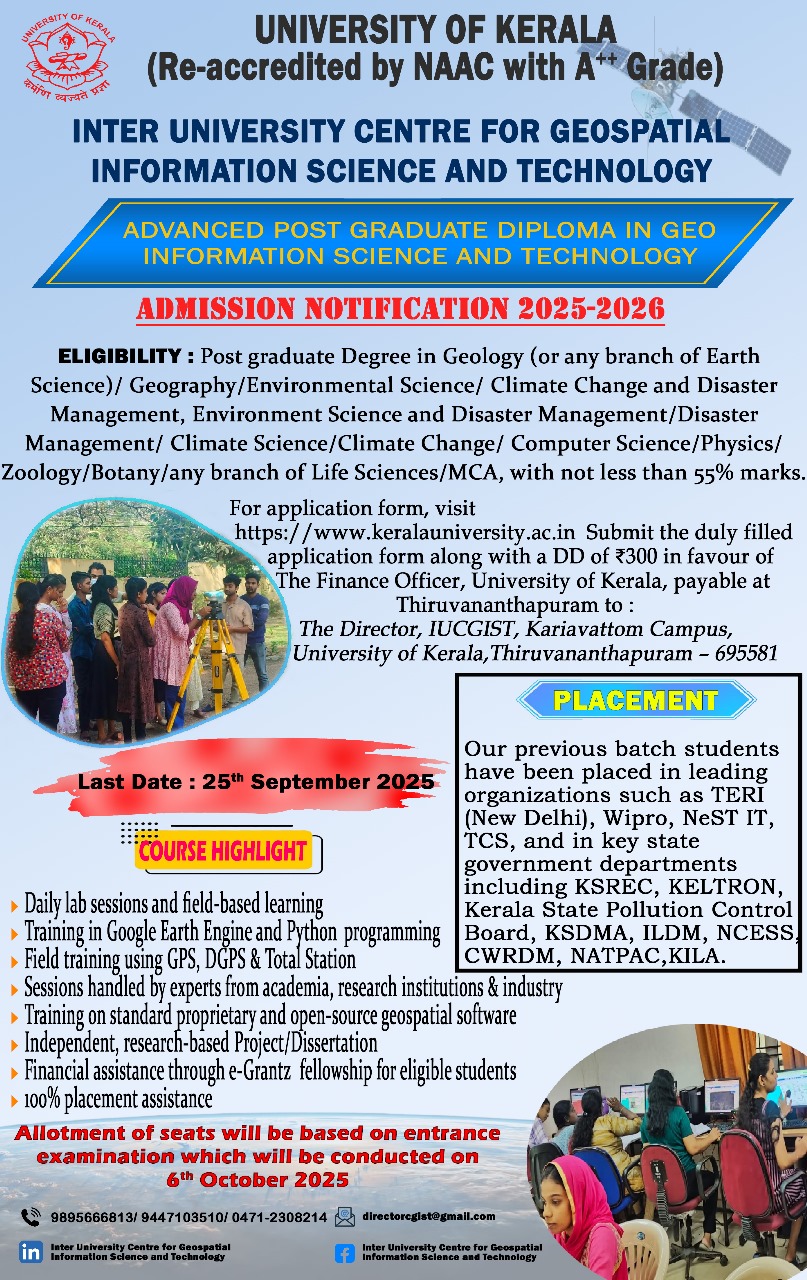 ADMISSION NOTIFICATION (2025-2026 batch) Advanced PG Diploma in Geo-Information Science and Technology (APGDGIST) Advanced PG Diploma in Geo-Information Science and Technology (APGDGIST) Advanced PG Diploma in Geo-Information Science and Technology (APGDGIST)